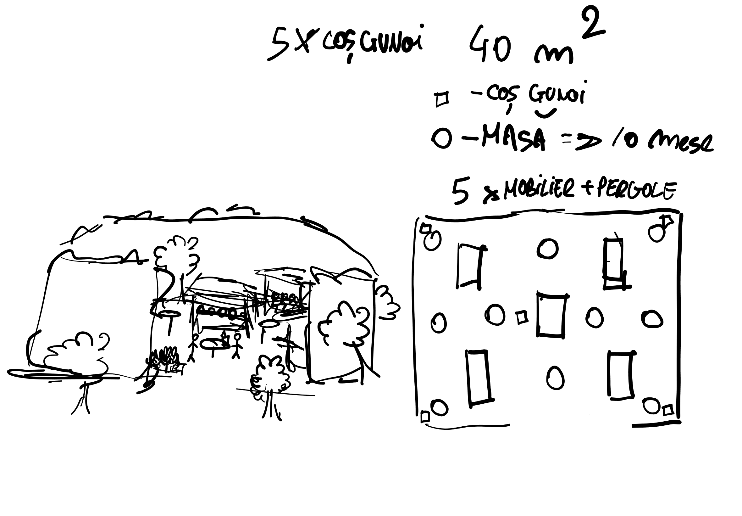 5 pergole = 15.000RON 5 seturi de mobilier de exterior din paleti = 7.500RON 10 mese de stat in picioare de exterior = 15.000RON 100 rasaduri gard viu minune= 260 RON 5 cosuri de gunoi = 1750 RON copaci fructiferi si lavanda = 1000RON ————————- TOTAL: 40.510 RON +10%rezerva 4051RON => 44.561 RON
